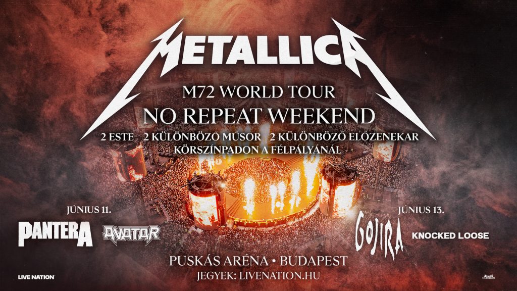 A Metallica 8 év után tér vissza Budapestre az M72 elnevezésű világkörüli turnéval, ami jövőre már negyedik éve fut majd. 2026-ban érkeznek Európába és az Egyesült Királyságba. Budapesten a Puskás Arénában lépnek fel két este, június 11-én és 13-án, ráadásul két különböző setlisttel és más-más előzenekarokkal. Az első bulin a Pantera és az Avatar, a másodikon pedig a Gojira és a Knocked Loose lesznek a Metallica vendégei.
