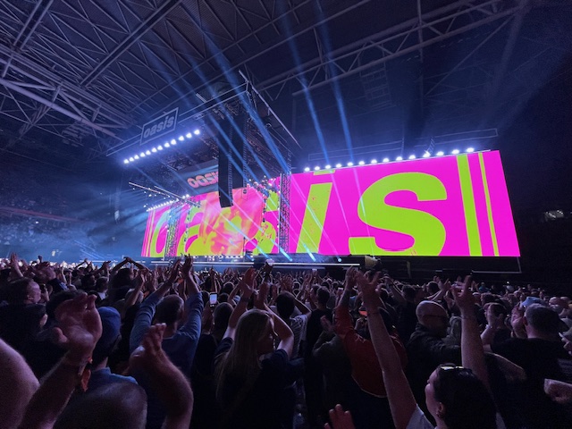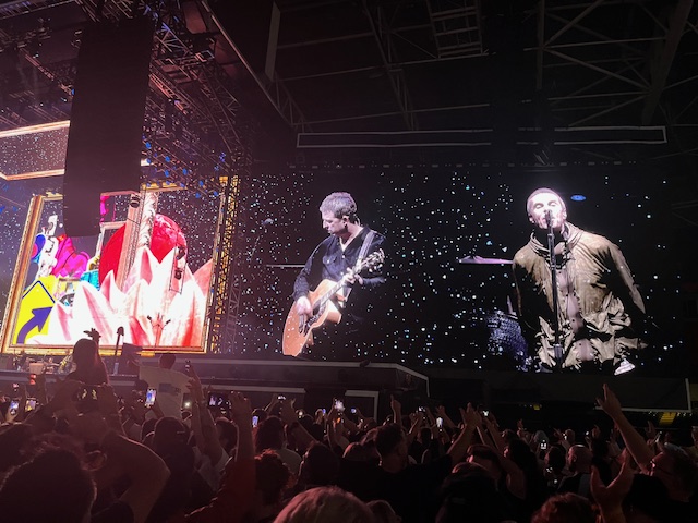 Az intro alatt besétálnak a tagok is, Liam és Noel felemelt kézzel, összekapaszkodva. A stadion valósággal megőrül, amíg az együttes tagjai teljesen rezzenéstelen arccal odasétálnak a hangszereikhez. Liam és Noel meghajol egymás előtt, majd mindenki a helyére áll, és indul a koncert. A kezdő dal, a Hello, aminek az olyan sorai, mint: „Years are falling by like the rain” és „It’s good to be back” különösen jól rímelnek a ’25-ös turné kezdő pillanataira.