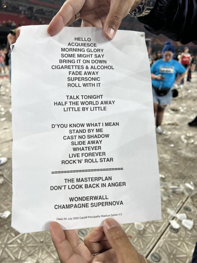 Aki elmegy a live ’25 valamelyik koncertjére, és azt szeretné, hogy meglepetés legyen számára az előadott számok listája, az most csukja be a szemét, meg amúgy az egész internetet is, és vonuljon ki a civilizációból, a többieknek pedig álljon itt egy kordokumentum egy szerencsés rajongó insta-posztjából: