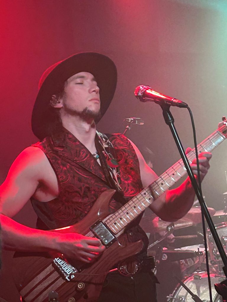 Fél kilenckor húzták le a fényeket a teremben, füstgép, intró, zenekar a színpadon. Tavalyhoz képest annyi változás történt náluk, hogy új basszusgitárosuk van, az alapító (Johanna Mercuriana) ugyanis épp gyesen van, a bébi egyébként megtekinthető az együttes Insta-oldalán. Az új hölgy viszont mindent tökéletesen és ugyanúgy hoz, mint elődje: sustorgás, ének, ringatózás, tánc, megjelenés, a különbség csak annyi, hogy kifinomultabban bánik a hangszerével. Ezen a téren a főnöknek sincs szégyenkezni valója, sőt… Balthazar Aguirre (kiugrott) ügyvéd úr remekül döntött, hogy foglalkozást váltott, minden túlzás nélkül állítható, hogy zseniális gitáros. Példaképként és tanítómesterként előszeretettel hivatkozik Santanára, de ennél sokkal több árnyalatból áll össze a játéka. Ott van például Szabó Gábor, vagy ahogy a világban ismerik, Gabor Szabo, akinek Gipsy Queen című opusának újraértelmezése is elhangzott meleg hangú, szeretettel teli szavak kíséretében. Aztán. Nem lehet nem észrevenni a hasonlóságot Stevie Ray Vaughan néhai gitáristennel. Nemcsak a kinézet, hanem technika, hangszínek, improvizációs készség – hogy csak a legjellemzőknél maradjunk – is stimmel, ha másért nem, már csak a szellemidézés miatt megéri jelen lenni az együttes koncertjén.
