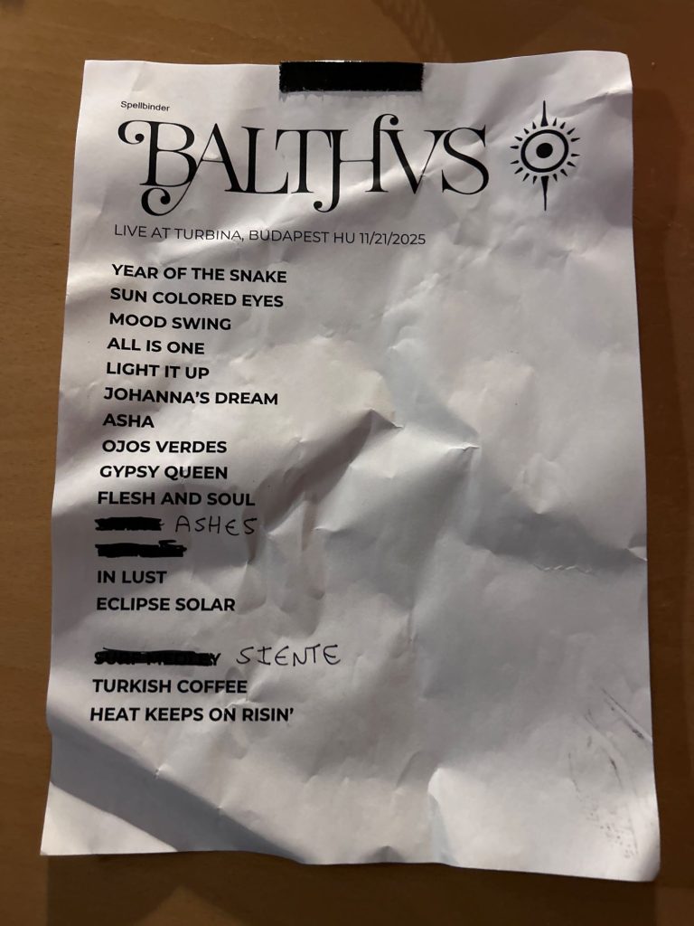 Akit jó néhány évvel ezelőtt magával ragadott a Khruangbin lebegős pszichedeliája, majd a Glass Beams is elvarázsolta éteri muzsikájával, netalán tán még némi Altin Gün is becsúszott, annak előbb utóbb megjelent valamelyik feedjében a kolumbiai trió is, a BALTHVS, platformtól függően egy lemez vagy mondjuk a KEXP-n lenyomott koncertjük formájában. Túl sok ilyen embert azonban nem lehet találni Budapesten, vagy legalábbis igen kevesen szeretnek közülük koncertre járni… Nem tudjuk eldönteni, melyik a nagyobb csoda: hogy tavaly egyszer csak megjelent a zenekar az A38 októberi programjában, vagy az, hogy picivel több mint egy évvel később újra meg lehetett nézni őket itthon, ezúttal egy még kisebb kapacitású helyen, a Turbina nagyszobájában. Ennél nagyobb bajunk persze sose legyen, szívesen ott lennénk akár minden hónapban egy Balthvs-koncerten. (Így legyen!)